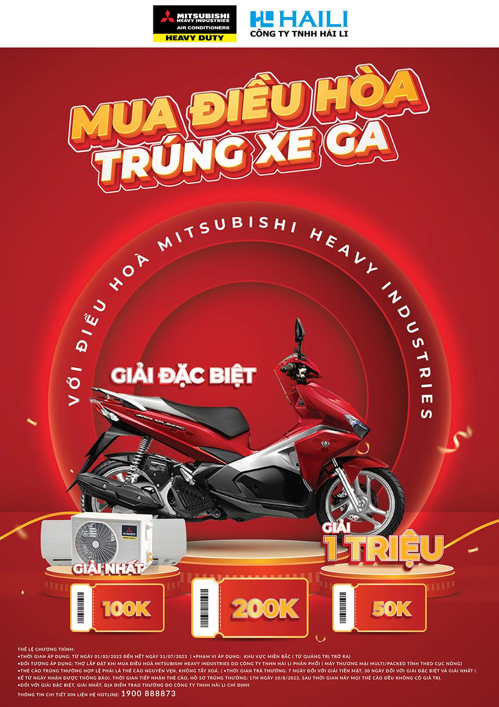 Mitsubishi Heavy Industries (Công ty TNHH Hải Li) trân trọng cảm ơn Quý Khách hàng đã luôn tin tưởng và hợp tác cùng thương hiệu điều hòa của chúng tôi trong thời gian qua. Thay lời cảm ơn, Mitsubishi Heavy Industries (Công ty TNHH Hải Li) xin gửi tới Quý Khách hàng chương trình “MUA ĐIỀU HOÀ, TRÚNG XE GA” như sau: