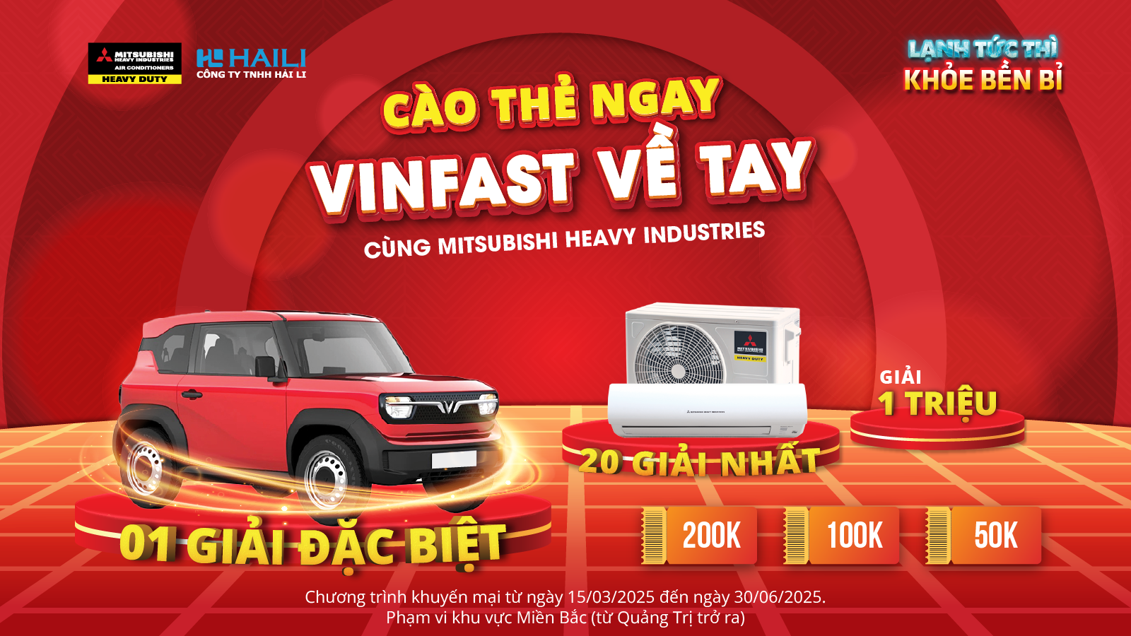 Lên ga, sẵn sàng rinh quà trong chương trình “Cào thẻ ngay - Vinfast về tay” từ điều hòa không khí Mitsubishi Heavy Industries!